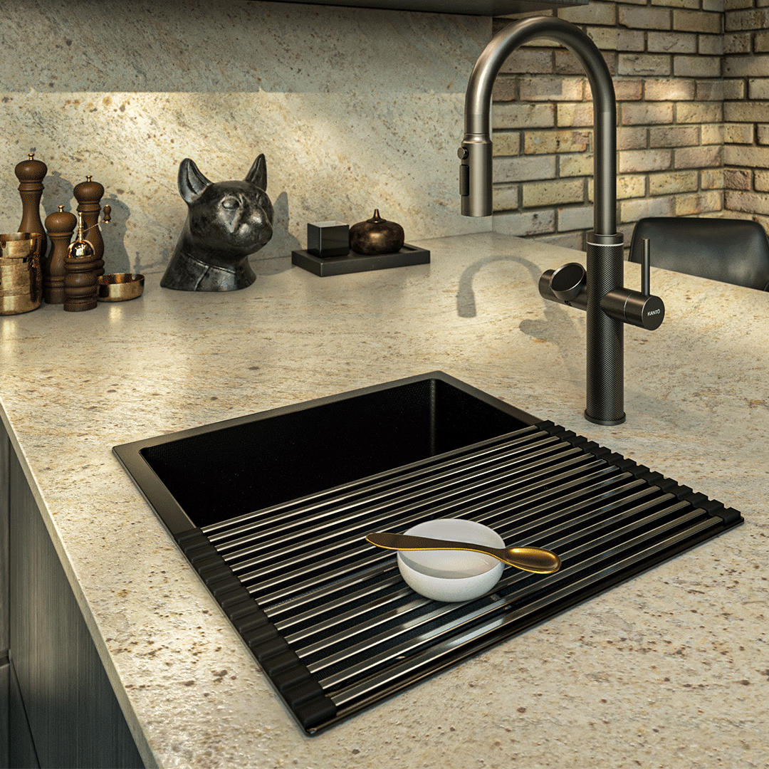 Incluye un escurridor enrrollable en acero inoxidable que amplía la superficie de trabajo y mantiene la zona de lavado organizada, además de sifón y rebose para una instalación completa y eficiente. Su instalación versátil permite sobreponerlo en el mesón o empotrarlo de forma submontada, adaptándose al diseño de cada cocina.