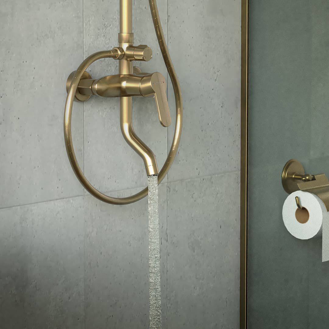 Con la ducha Advance Brushed Golden, tu baño refleja diseño, sofisticación, funcionalidad y bienestar en cada detalle.
