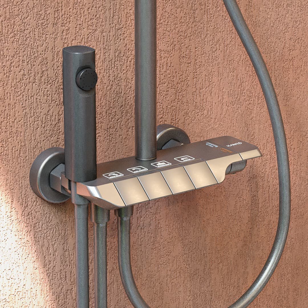 Nuestra ducha Elegance Gun Grey se destaca por su diseño elegante y contemporáneo, combina líneas limpias y con un acabado sofisticado en tono Gun Grey. Su estilo versátil se adapta a cualquier tipo de baño, aportando modernidad, resistencia y un aire distintivo que realza tu espacio. Con tres tipos de chorros en la teleducha para una experiencia única en tu baño.