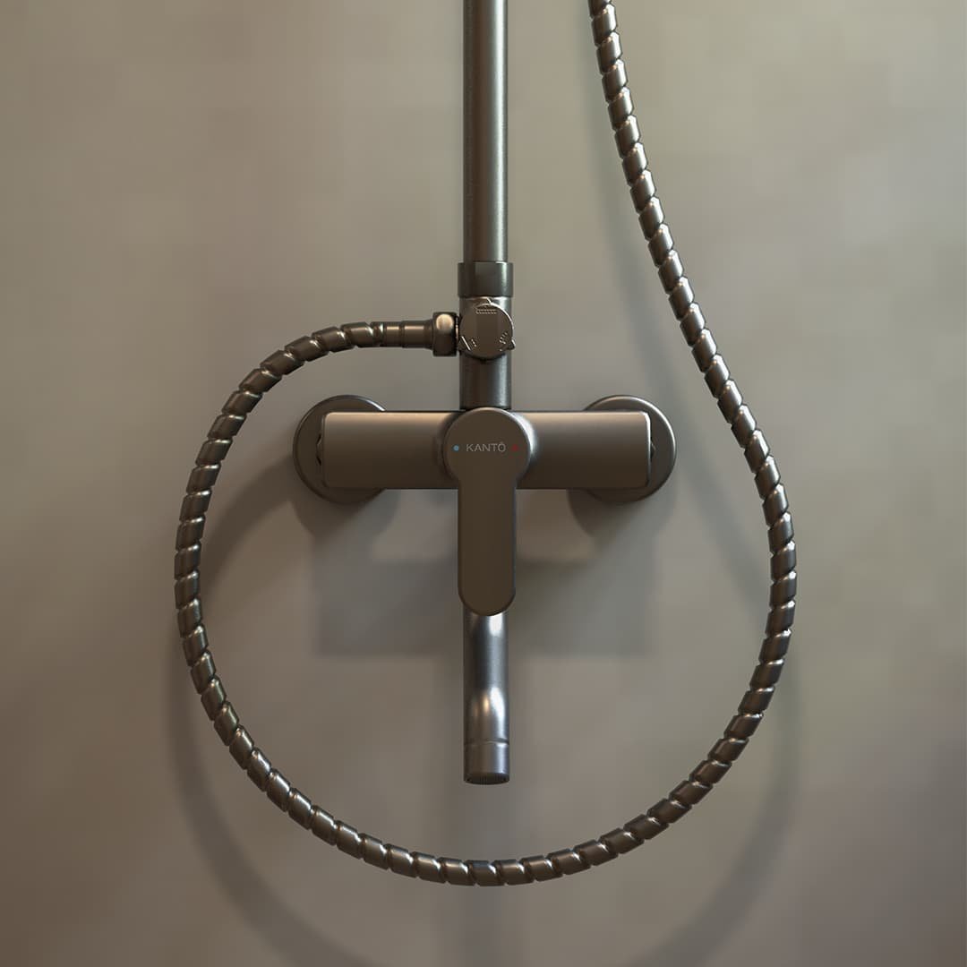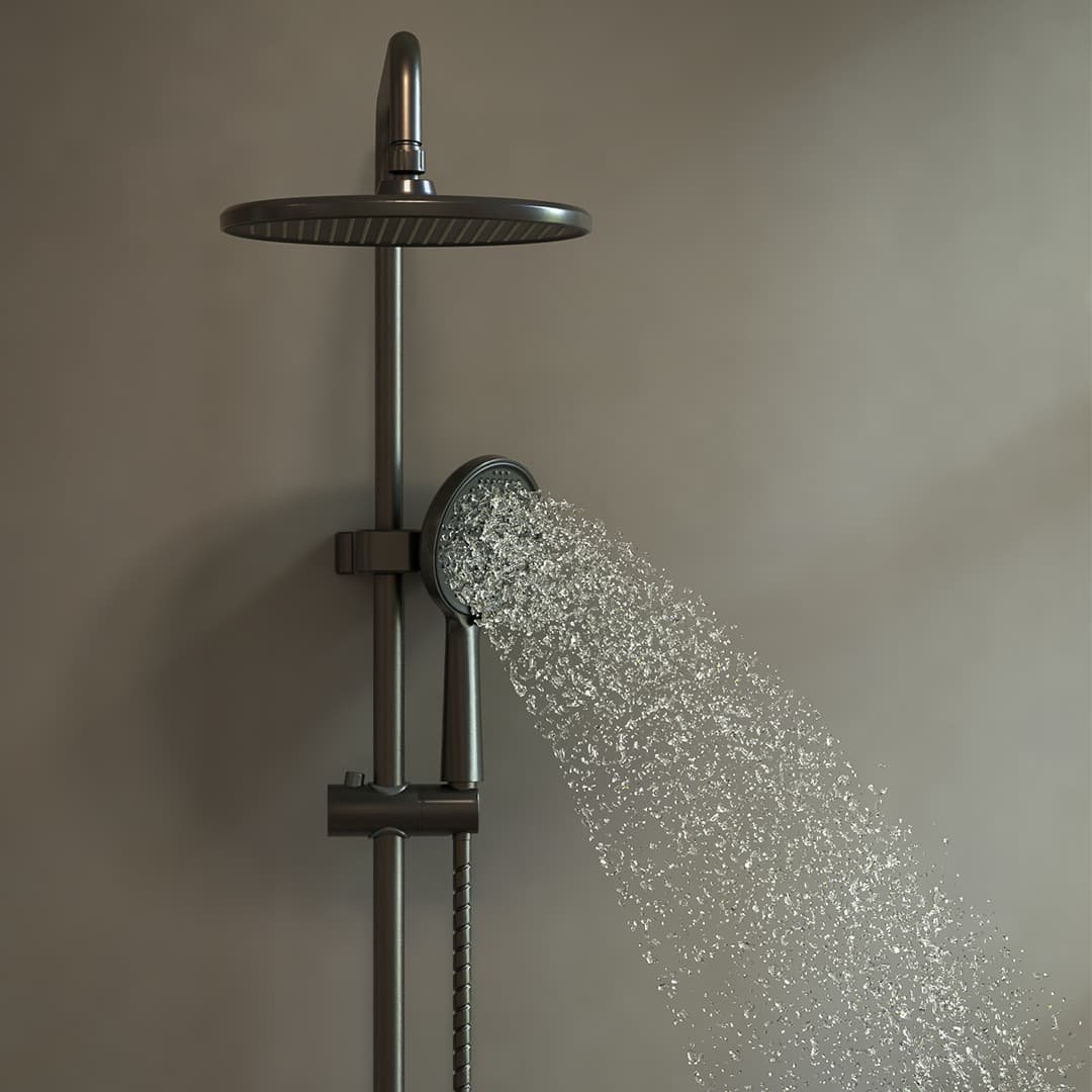 Nuestra ducha Essential Gun Grey le da a tu baño un toque de sofisticación y bienestar continuo, donde cada detalle está pensado para tu comodidad.
