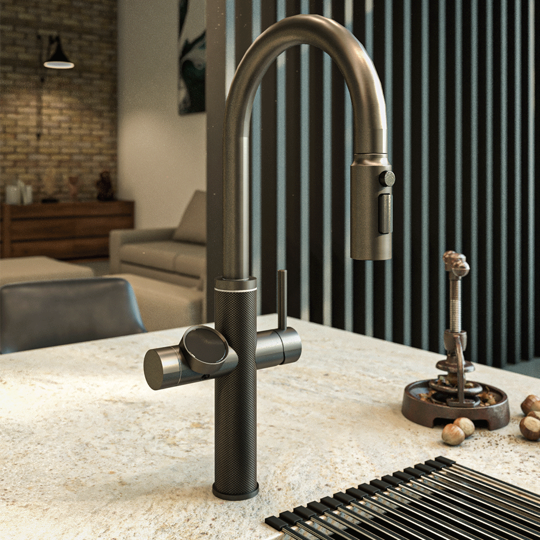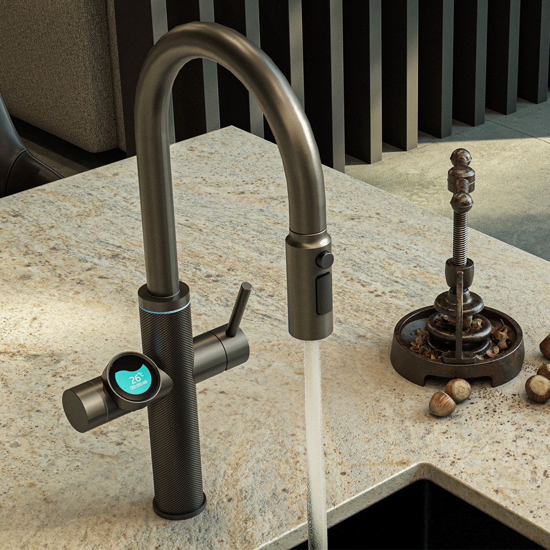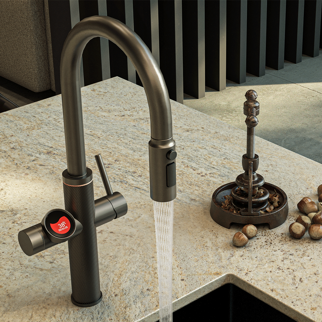 Nuestra grifería Goose Gun Grey es elegante y clásica con tecnología de última generación para transformar tu cocina en un espacio sofisticado y funcional. Su diseño curvo y estilizado aporta una presencia atemporal que se integra perfectamente en ambientes modernos, minimalistas o de líneas más tradicionales. El acabado Gun Grey realza su estética y garantiza durabilidad, resistencia y un carácter premium en cada detalle.