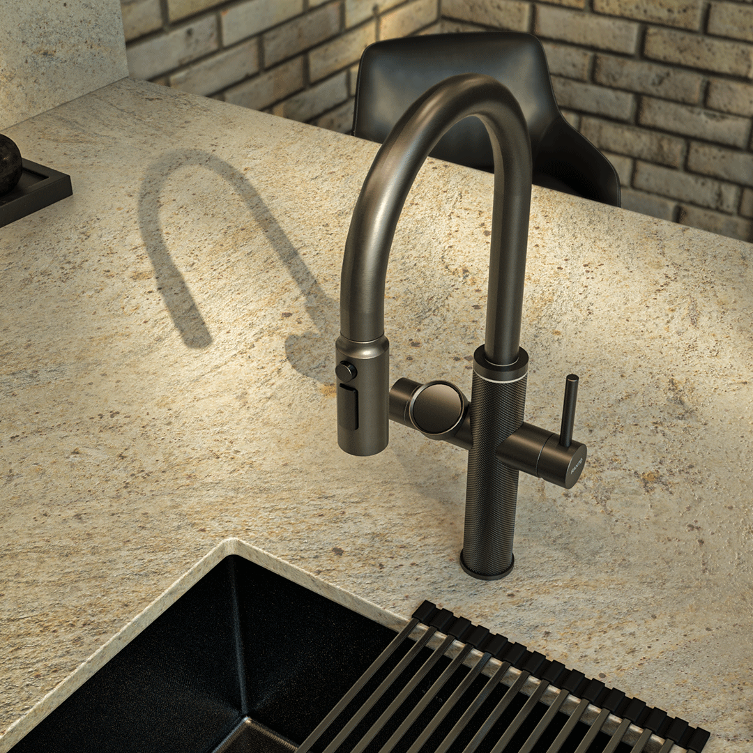 Nuestra grifería Goose Gun GREY es diseño que inspira. Tecnología que acompaña. Funcionalidad que transforma tu cocina.