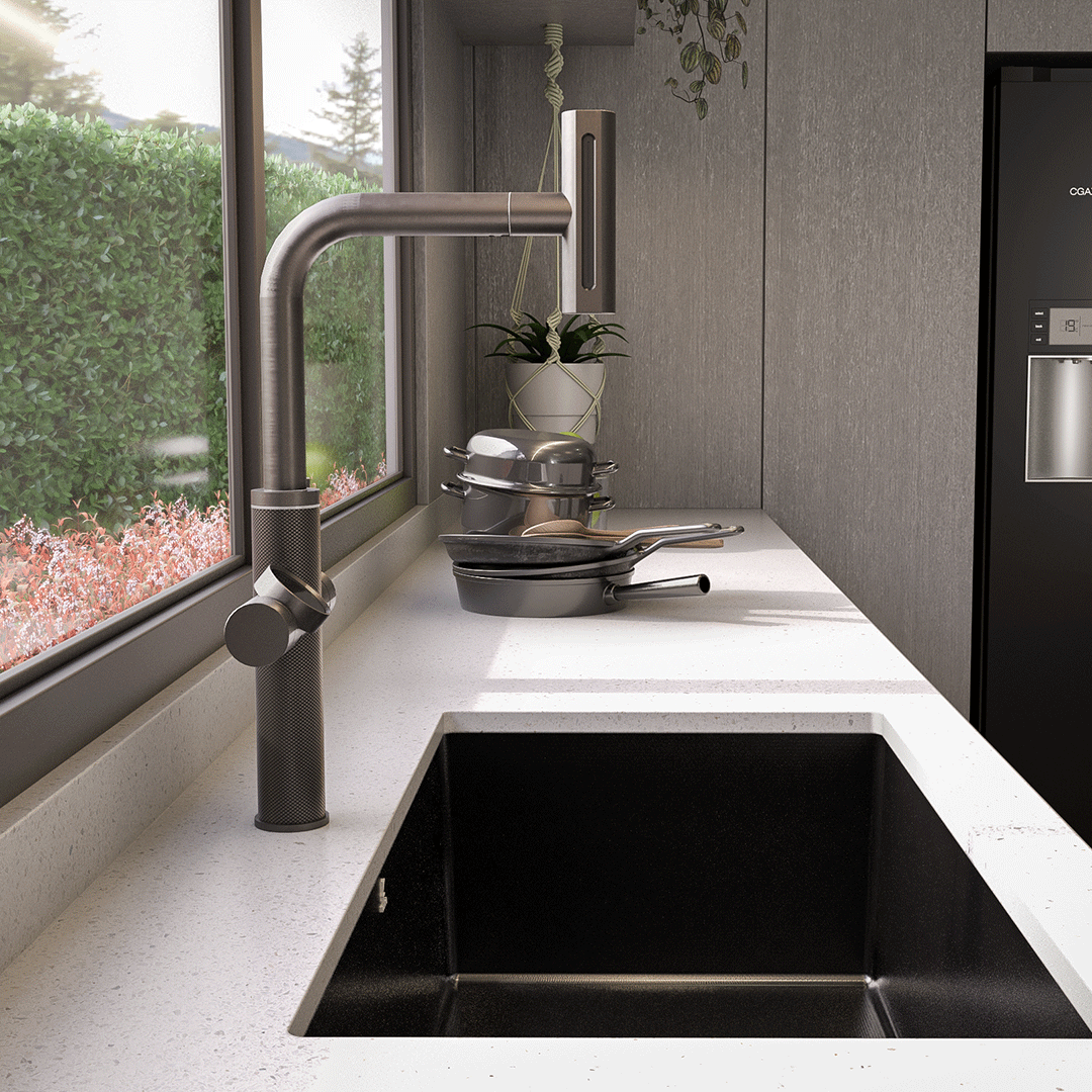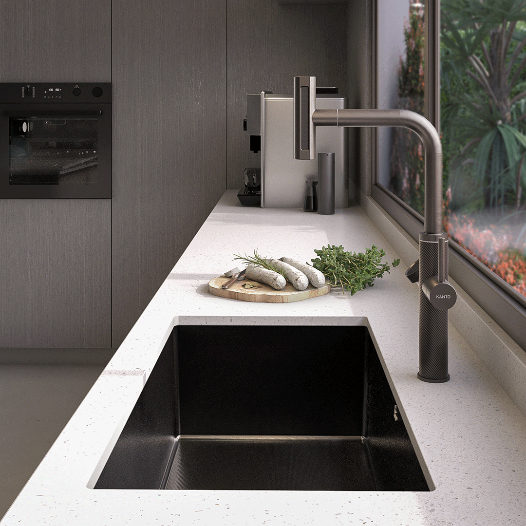 Nuestro lavaplatos Taro es la elección perfecta para cocinas amplias y ambientes premium que buscan una presencia estética más marcada. Con sus 80 cm de ancho, ofrece una superficie generosa que facilita cada acción, brindando comodidad, estilo y libertad de movimiento sin perder la elegancia que caracteriza a Kantō.