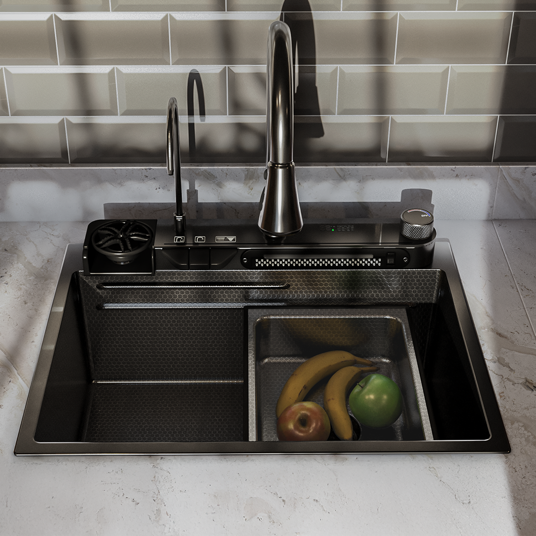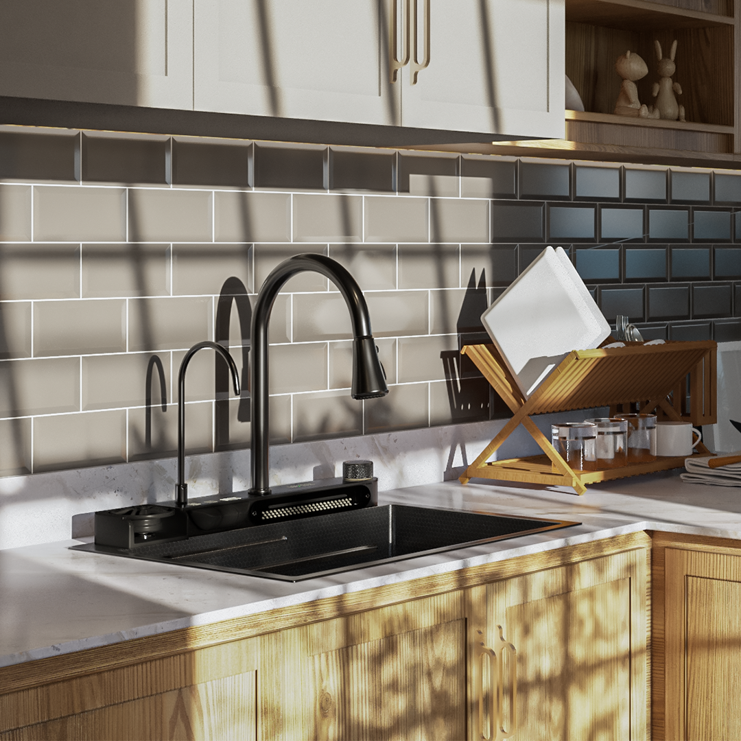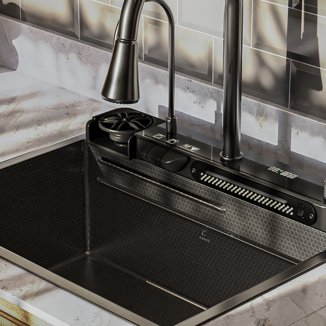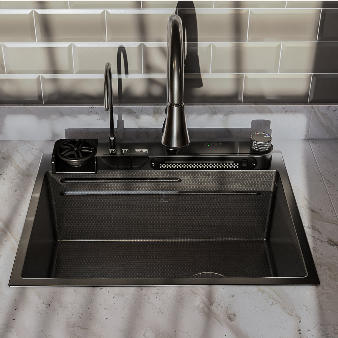 Equipado con grifería extraíble y múltiples modos de flujo de agua, permite un lavado más cómodo, versátil y preciso, tanto para utensilios como para alimentos.
